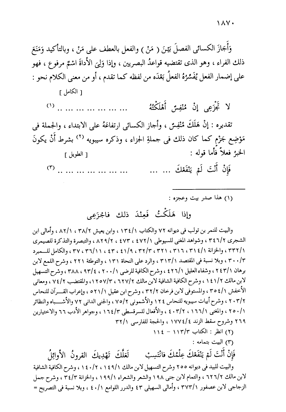 تقديره: إن هلك منفس، وأجاز الكسائي ارتفاعه على الابتداء، والجملة في موضع جزمكما كان ذلك في جملة الجزاء، وذكره سيبويه بشرط أن يكون الخبر فعلاً فأما قوله: