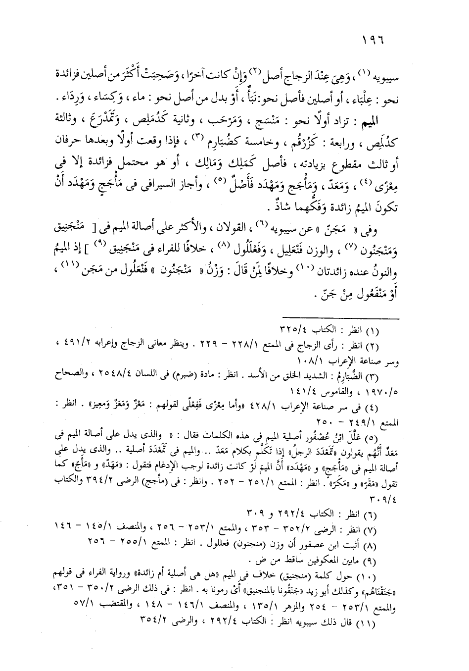 الميم: تزاد أولاً نحو: منسج، ومرحب، وثانية كدملص، وتمدرع، وثالثة كدلمص، ورابعة: كزرقم، وخامسة كضبارم، فإذا وقعت أولاً وبعدها حرفان أو ثالث مقطوع بزيادته، فأصل كملك ومالك، أو هو محتمل فزائدة إلا في معزى، ومعد، ومأجج ومهدد فأصل، وأجاز السيرافي في مأجج ومهدد أن تكون الميم زائدة وفكهما شاذ.