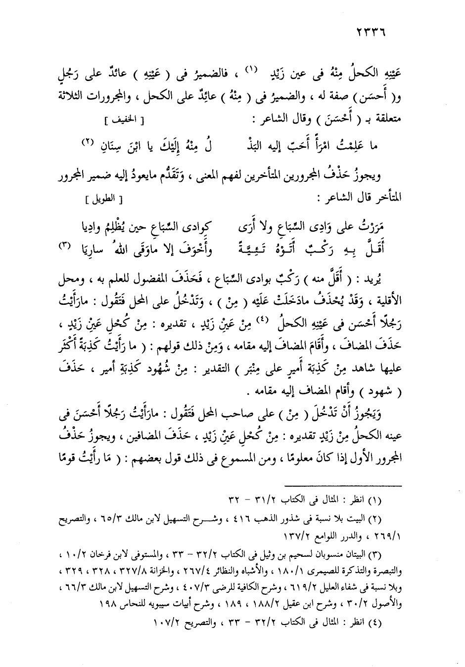 عينه الكحل منه في عين زيد، فالضمير في (عينه) عائد على رجل و (أحسن) صفة له، والضمير في (منه) عائد على الكحل، والمجرورات الثلاثة متعلقة بـ (أحسن) وقال الشاعر: