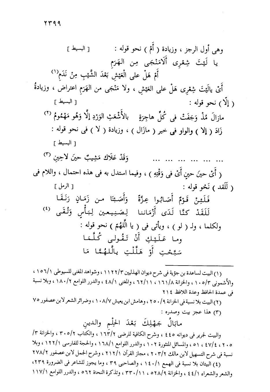 أي يا ليت شعري هل علي العيش، ولا منجي من الهرم اعتراض، وزيادة (إلا) نحو قوله: