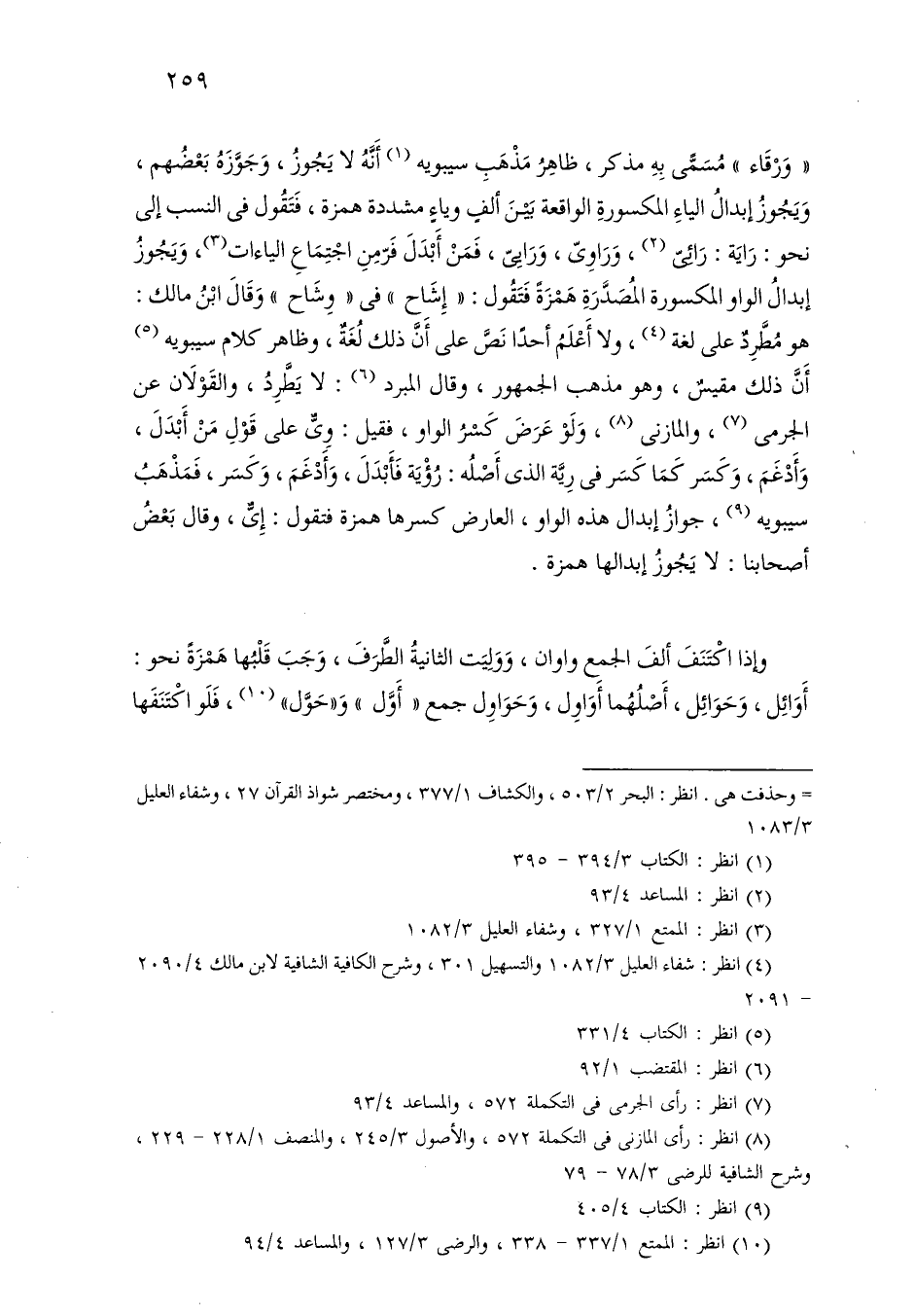 وإذا اكتنف ألف الجمع واوان، ووليت الثانية الطرف، وجب قلبها همزة نحو: أوائل، وحوائل، أصلهما أواول، وحواول جمع «أول» و «حول»، فلو اكتنفها
