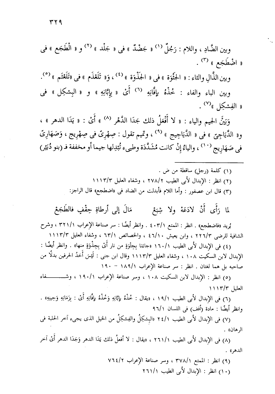وبين الضاد، واللام: رجل «جضد» في «جلد» و «الطجع» في «اضطجع».