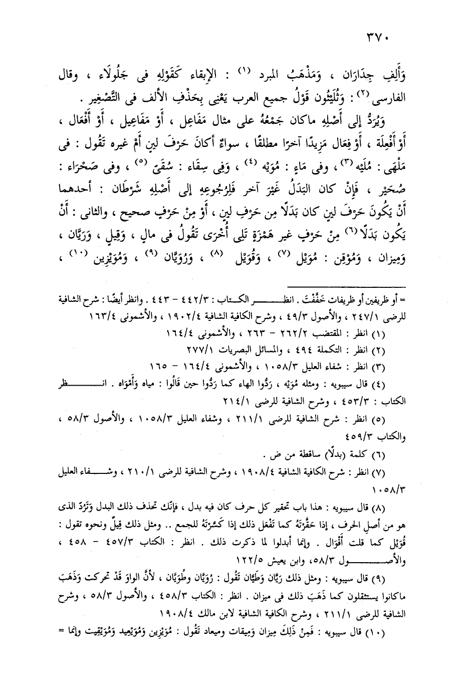 وألف جداران، ومذهب المبرد: الإبقاء كقوله في جلولاء، وقال الفارسي: وثلينون قول جميع العرب يعني بحذف الألف في التصغير.