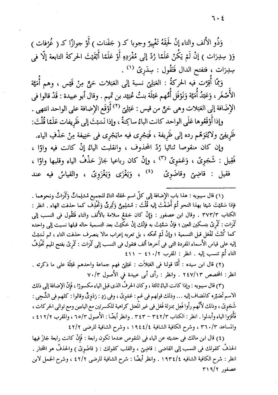 وذو الألف والتاء إن لحقه تغيير وجوبًا كـ (جفنات) أو جوازًا كـ (غرفات) و (سدرات) إن لم يكن علمًا رد إلى مفرده أو علمًا أبقيت الحركة التابعة إلا في سدرات، فتفتح الدال فتقول: سدرى.