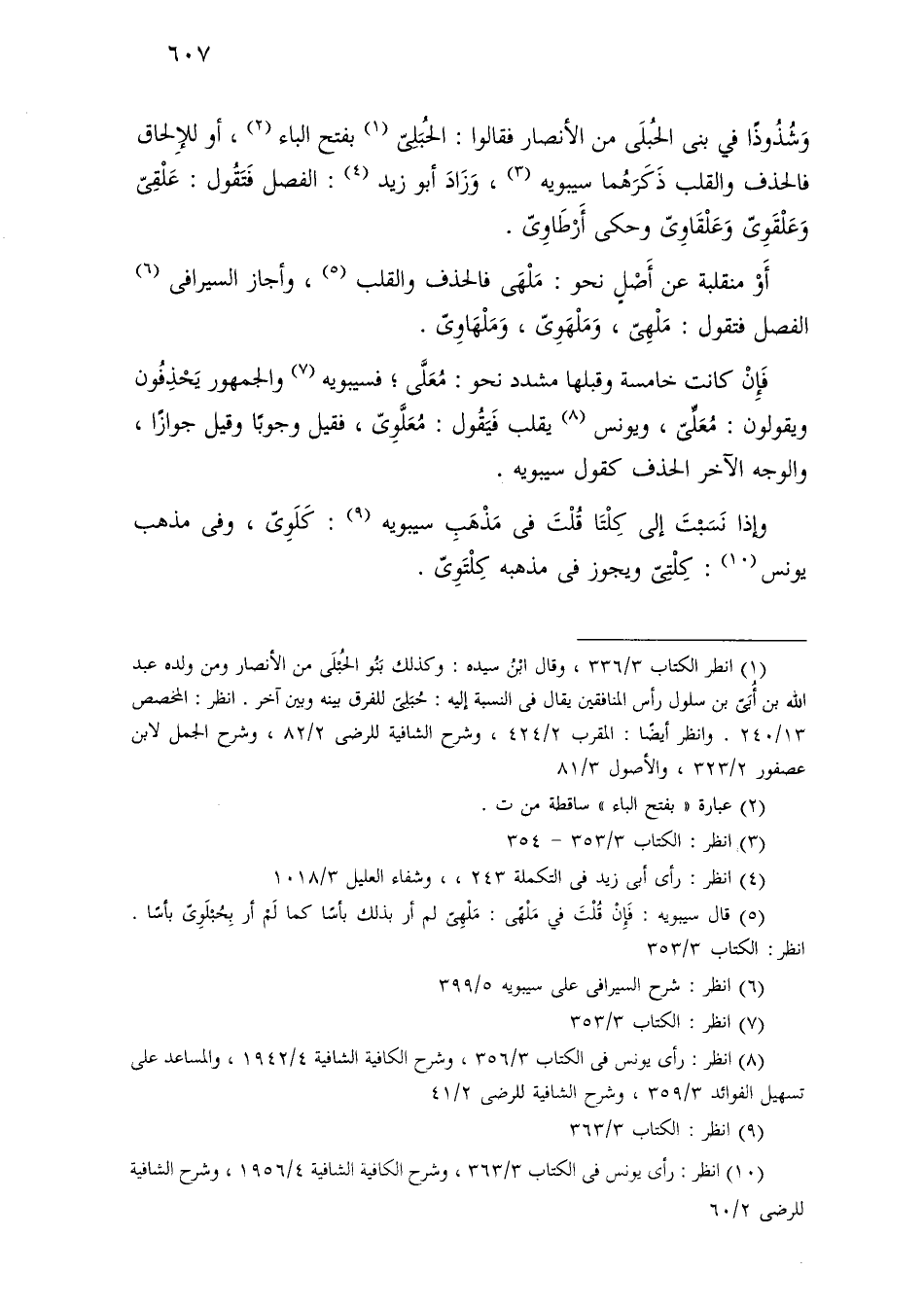 وشذوذًا في بني الحبلى من الأنصار فقالوا: الحبلى بفتح الباء، أو للإلحاق فالحذف والقلب ذكرهما سيبويه، وزاد أبو زيد: الفصل فتقول: علقى وعلقوى وعلقاوى وحكى أرطاوى.