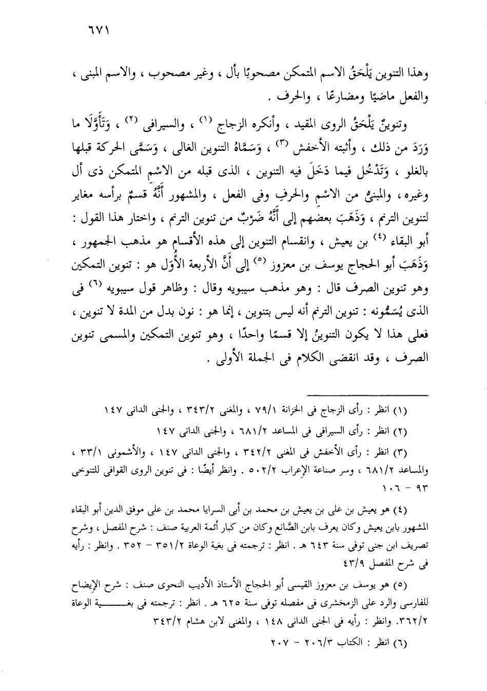 وتنوين يلحق الروى المقيد، وأنكره الزجاج، والسيرافي، وتأولا ما ورد من ذلك، وأثبته الأخفش، وسماه التنوين الغالي، وسمي الحركة قبلها بالغلو، وتدخل فيما دخل فيه التنوين، الذي قبله من الاسم المتمكن ذي أل وغيره، والمبني من الاسم والحرف وفي الفعل، والمشهور أنه قسم برأسه مغاير لتنوين الترنم، وذهب بعضهم إلى أنه ضرب من تنوين الترنم، واختار هذا القول: أبو البقاء بن يعيش، وانقسام التنوين إلى هذه الأقسام هو مذهب الجمهور، وذهب أبو الحجاج يوسف بن معزوز إلى أن الأربعة الأول هو: تنوين التمكين وهو تنوين الصرف قال: وهو مذهب سيبويه وقال: وظاهر قول سيبويه في الذي يسمونه: تنوين الترنم أنه ليس بتنوين، إنما هو: نون بدل من المدة لا تنوين، فعلى هذا لا يكون التنوين إلا قسمًا واحدًا، وهو تنوين التمكين والمسمى تنوين الصرف، وقد انقضى الكلام في الجملة الأولى.