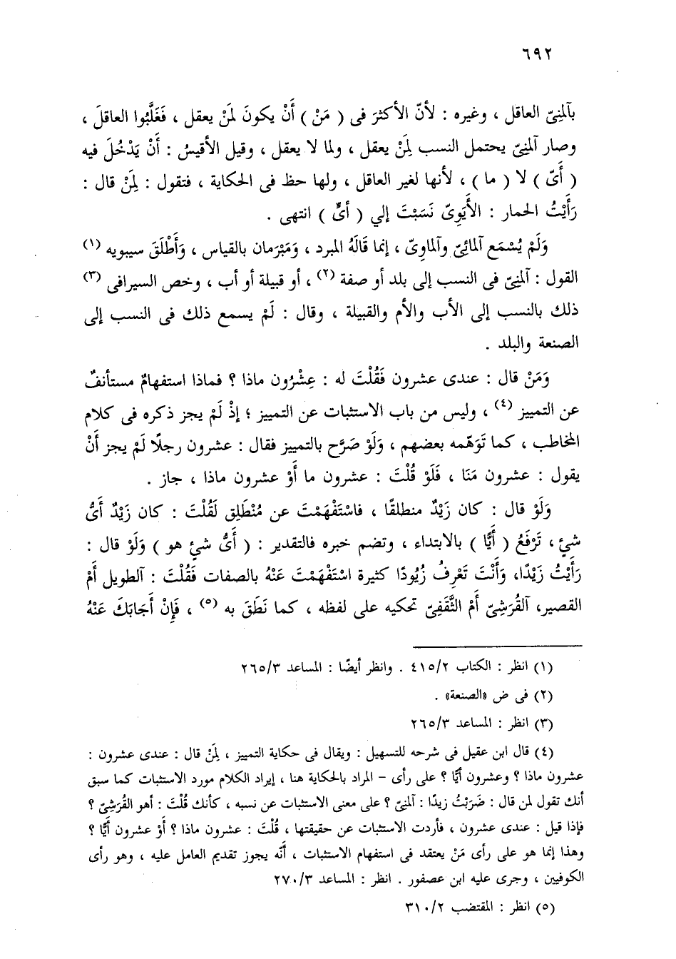 ومن قال: عندي عشرون فقلت له: عشرون ماذا؟ فماذا استفهام مستأنف عن التمييز، وليس من باب الاستثبات عن التمييز؛ إذ لم يجز ذكره في كلام المخاطب، كما توهمه بعضهم، ولو صرح بالتمييز فقال: عشرون رجلاً لم يجز أن يقول: عشرون منا، فلو قلت: عشرون ما أو عشرون ماذا؟ جاز.