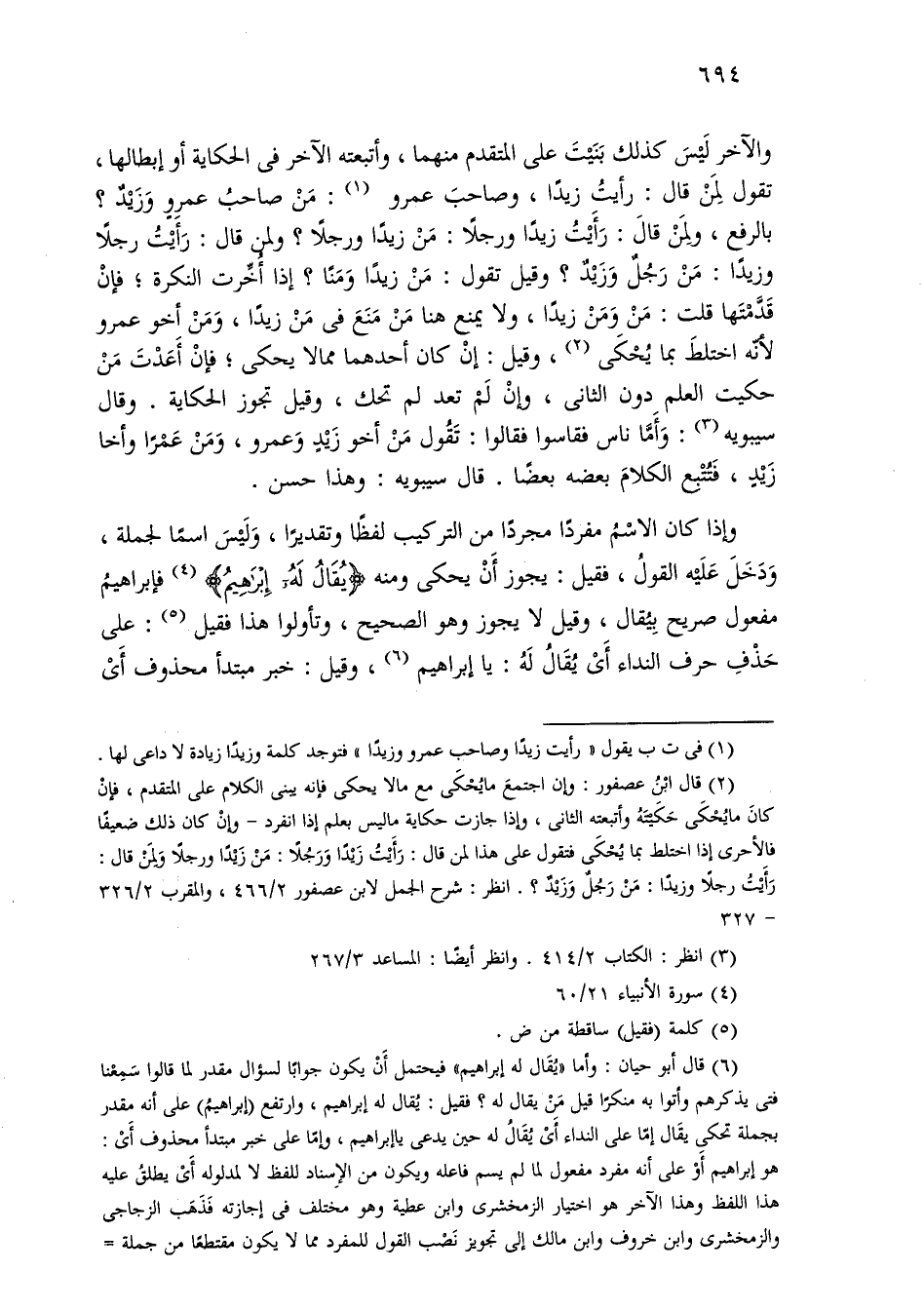وإذا كان الاسم مفردًا مجردًا من التركيب لفظًا وتقديرًا، وليس اسمًا لجملة، ودخل عليه القول، فقيل: يجوز أن يحكي ومنه [يقال له إبراهيم] فإبراهيم مفعول صريح بيقال، وقيل لا يجوز وهو الصحيح، وتأولوا هذا فقيل: على حذف حرف النداء أي يقال له: يا إبراهيم، وقيل: خبر مبتدأ محذوف أي