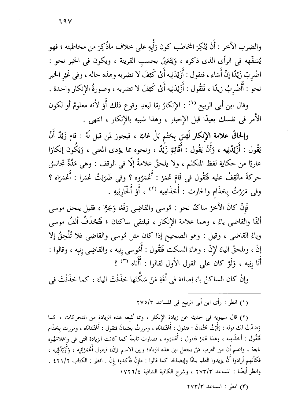 وإلحاق علامة الإنكار ليس بحتم بل غالبًا، فيجوز لمن قيل له: قام زيد أن يقول: أزيدنيه، وأن يقول: أقائم زيد، ونحوه مما يؤدي المعنى، ويكون إنكارًا عاريًا من حكاية لفظ المتكلم، ولا يلحق علامة إلا في الوقف: وهي مدة تجانس حركة ما تقف عليه فتقول في قام عمر: أعمروه؟ وفي ضربت عمرا: أعمراه؟ وفي مررت بحذام والحارث: أحذاميه، أو ألحارثيه.