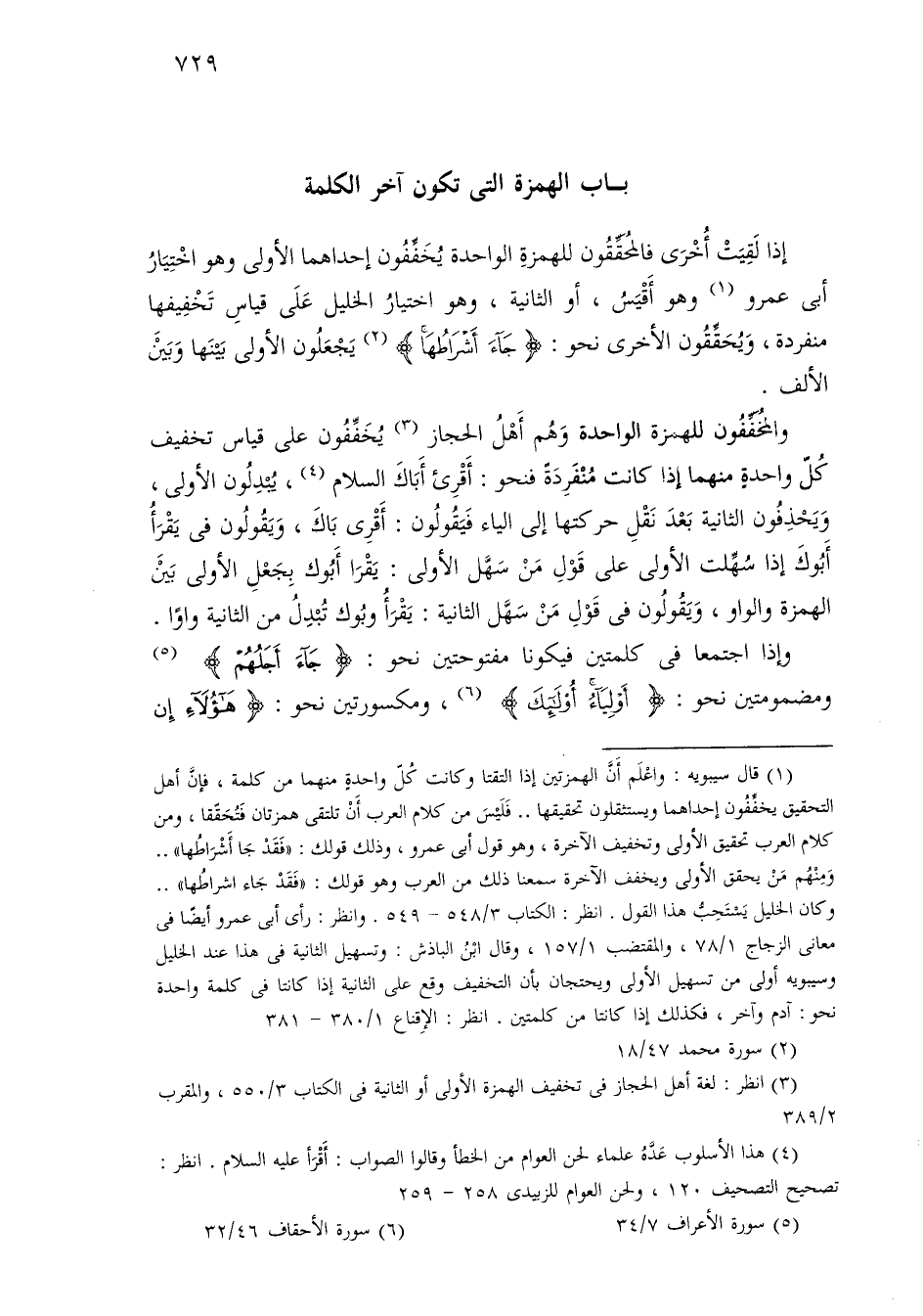 إذا لقيت أخرى فالمحققون للهمزة الواحدة يخففون إحداهما الأولى وهو اختيار أبي عمرو وهو أقيس، أو الثانية، وهو اختيار الخليل على قياس تخفيفها منفردة، ويحققون الأخرى نحو: [جاء أشراطها] يجعلون الأولى بينها وبين الألف.