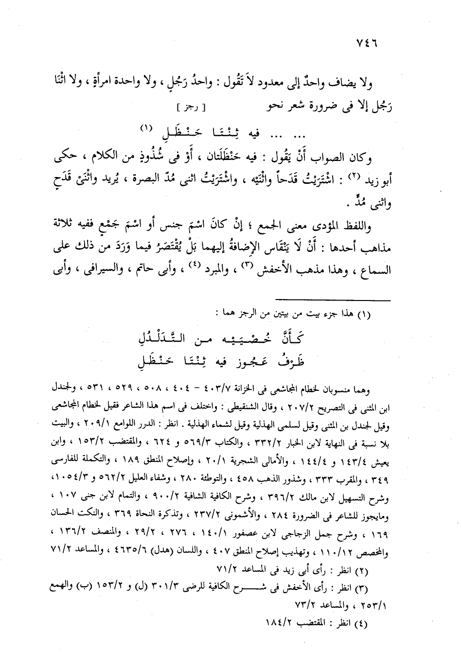 وكان الصواب أن يقول: فيه حنظلتان، أو في شذوذ من الكلام، حكى أبو زيد: اشتريت قدحًا واثنيه، واشتريت اثنى مد البصرة، يريد واثنى قدح واثنى مد.