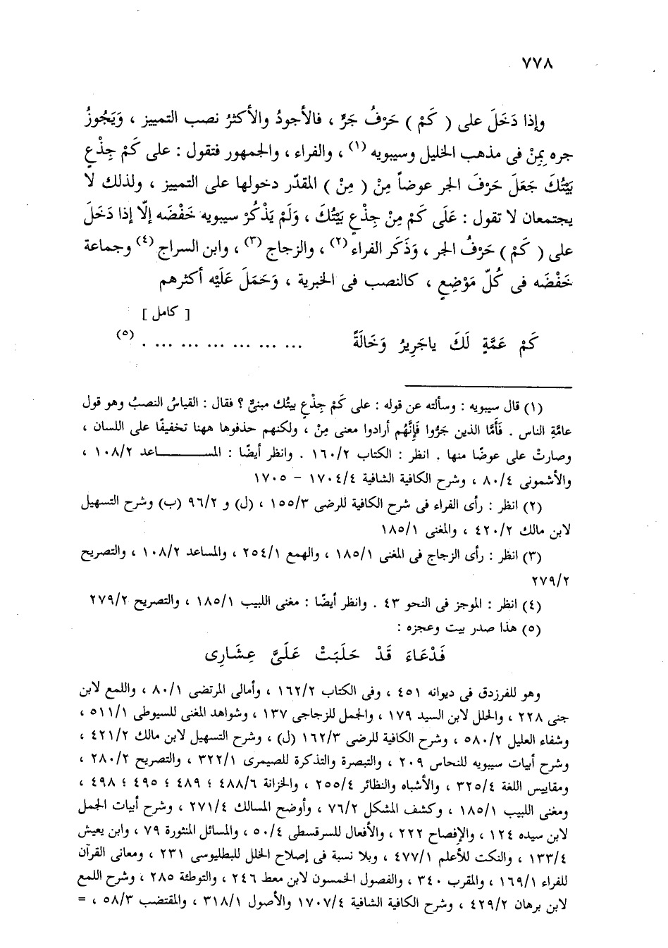 وإذا دخل على (كم) حرف جر، فالأجود والأكثر نصب التمييز، ويجوز جره بمن في مذهب الخليل وسيبويه، والفراء، والجمهور فتقول: على كم جذع بيتك جعل حرف الجر عوضًا من (من) المقدر دخولها على التمييز، ولذلك لا يجتمعان لا تقول: على كم من جذع بيتك، ولم يذكر سيبويه خفضه إلا إذا دخل على (كم) حرف الجر، وذكر الفراء، والزجاج، وابن السراج وجماعة خفضه في كل موضع، كالنصب في الخبرية، وحمل عليه أكثرهم.