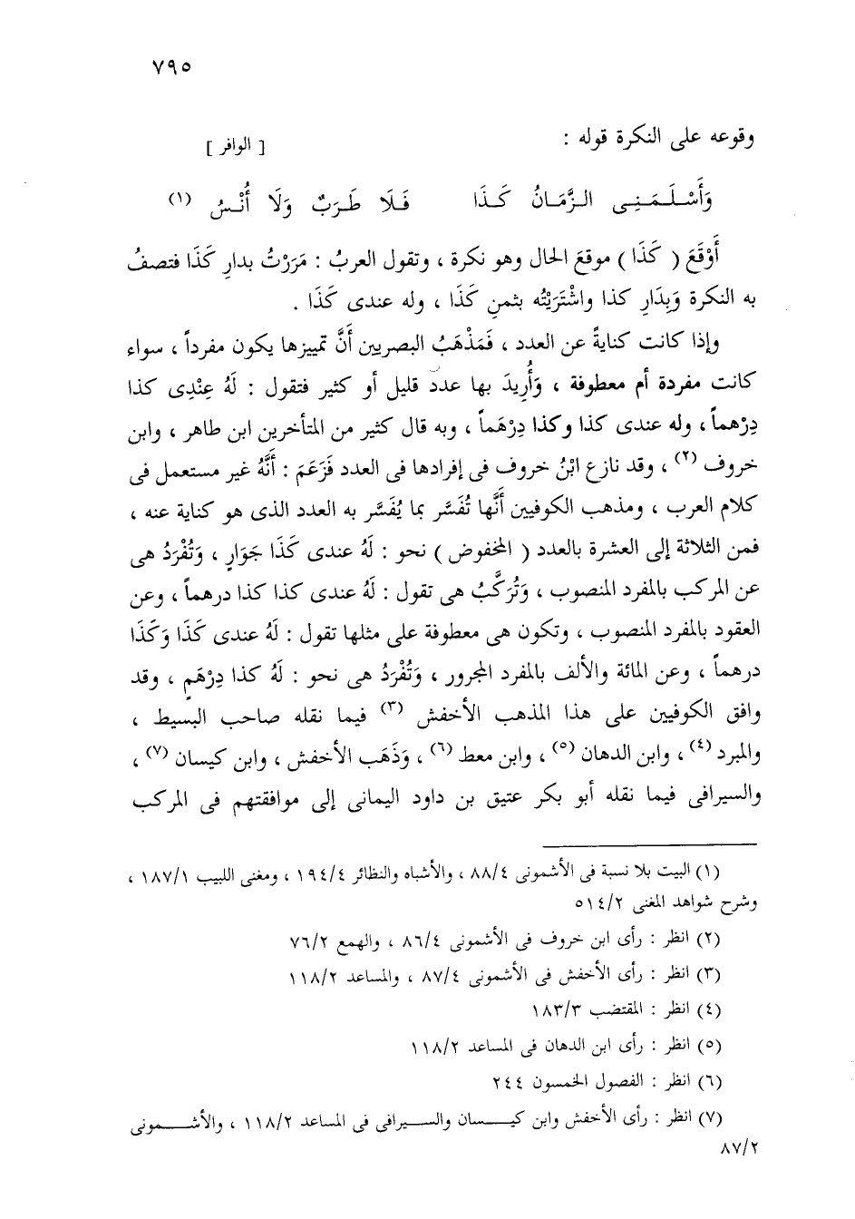 أوقع (كذا) موقع الحال وهو نكرة، وتقول العرب: مررت بدار كذا فتصف به النكرة وبدار كذا واشتريته بثمن كذا، وله عندي كذا.