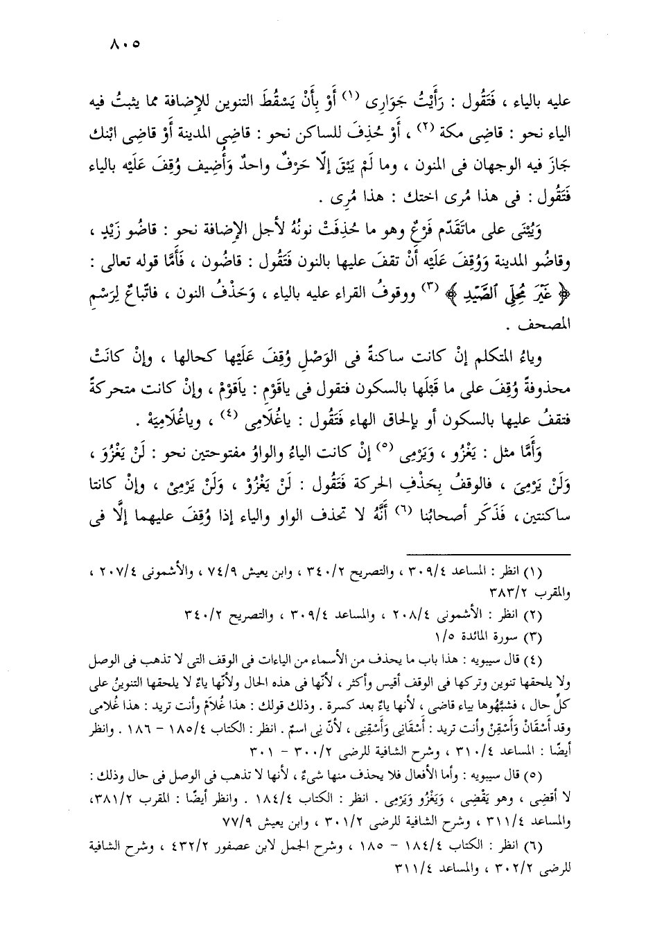 ويبنى على ما تقدم فرع وهو ما حذفت نونه لأجل الإضافة نحو: قاضو زيد، وقاضو المدينة ووقف عليه أن تقف عليها بالنون فتقول: قاضون، فأما قوله تعالى: [غير محلى الصيد] ووقوف القراء عليه بالياء، وحذف النون، فاتباع لرسم المصحف.