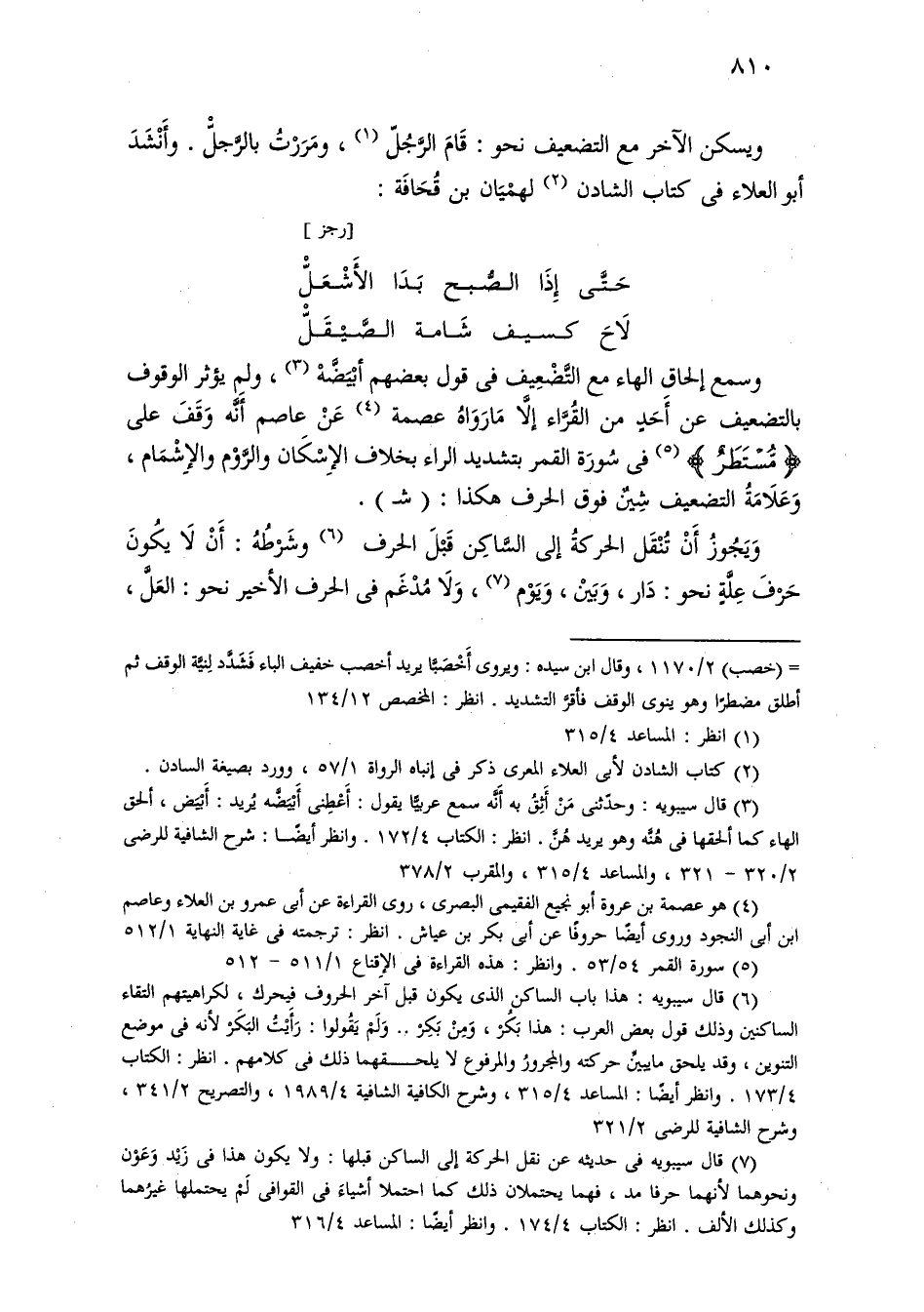 ويسكن الآخر مع التضعيف نحو: قام الرجل، ومررت بالرجل. وأنشد أبو العلاء في كتاب الشادن لهميان بن قحافة: