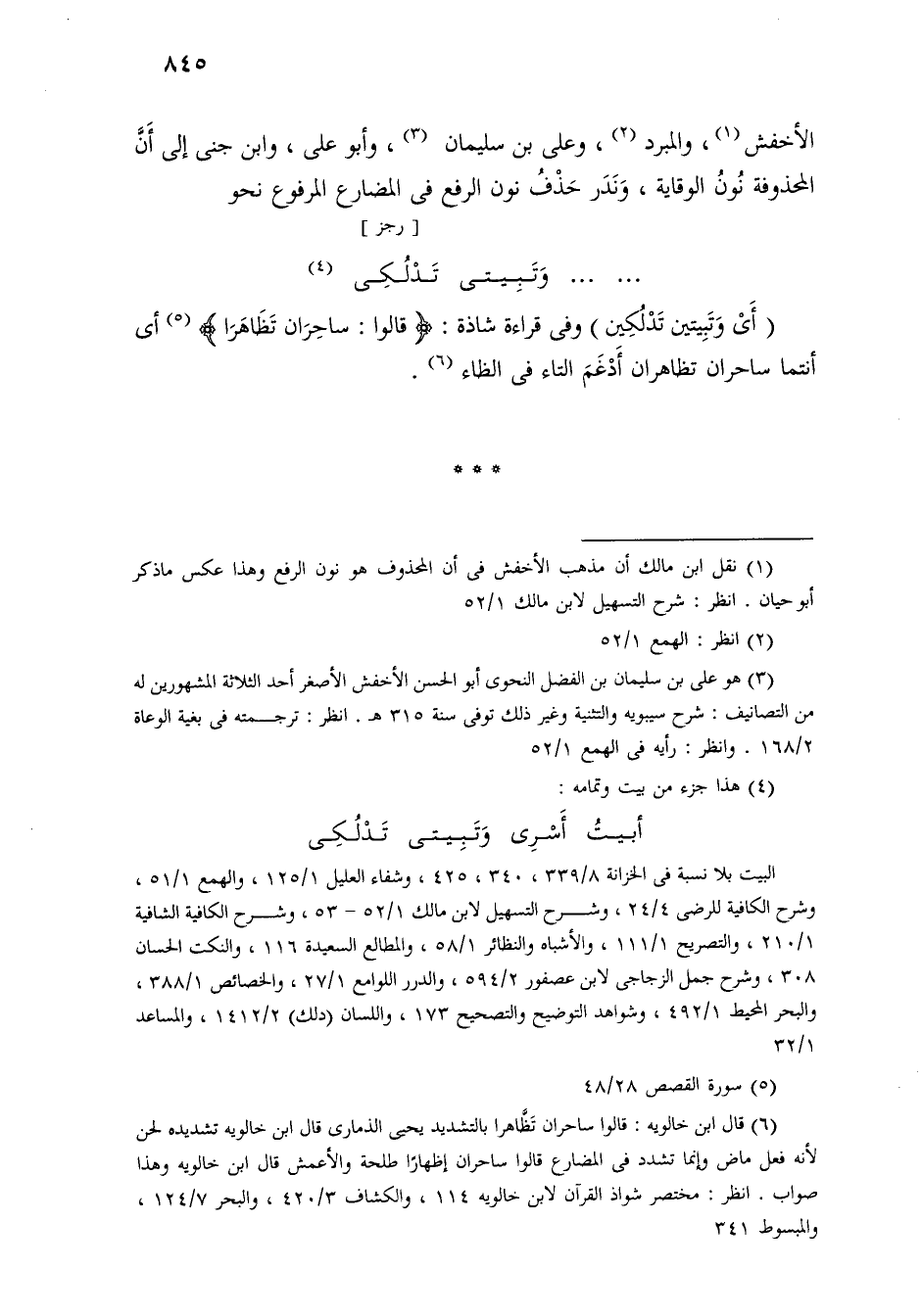 (أي وتبيتين تدلكين) وفي قراءة شاذة: [قالوا: ساحران تظاهرا] أي أنتما ساحران تظاهران أدغم التاء في الظاء.