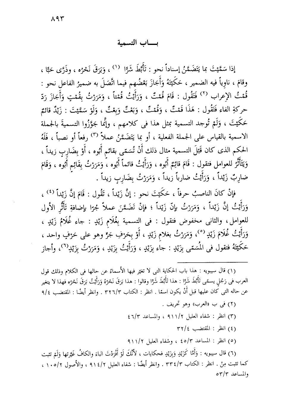 إذا سميت بما يتضمن إسنادًا نحو: تأبط شرًا، وبرق نحره، وذرى حبًا، وقام، ناويًا فيه الضمير، حكيته وأجاز بعضهم فيما اتصل به ضمير الفاعل نحو: قمت الإعراب فتقول: قام قمت، ورأيت قمتًا، ومررت بقمت وأجاز رد حركة الفاء فتقول: هذا قمت، وقمت، وبعت وبعت، ولو سميت: زيد قائم حكيت، ولم توجد التسمية بمثل هذا في كلامهم، وإنما جوزوا التسمية بالجملة الاسمية بالقياس على الجملة الفعلية، أو بما يتضمن عملاً رفعًا أو نصبًا، فله الحكم الذي كان قبل التسمية مثال ذك أن تسمى بقائم أبوه، أو بضارب زيدًا، ويتأثر للعوامل فتقول: قام قائم أبوه، ورأيت قائمًا أبوه، ومررت بقائم أبوه، وقام ضارب زيدًا، ورأيت ضاربًا زيدًا، ومررت بضارب زيدًا.