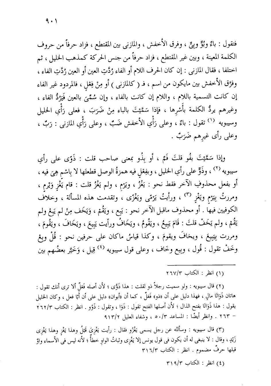 فتقول: باء وبو وبي، وفرق الأخفش والمازني بين المقتطع، فزاد حرفًا من حروف الكلمة المعينة، وبين غير المقتطع، فزاد حرفًا من جنس الحركة كمذهب الخليل، ثم اختلفا، فقال المازني: إن كان الحرف اللام أو الفاء ردت العين أو العين ردت الفاء، وفرق الأخفش بين ما يكون من اسم، فـ (كالمازني) أو من فعل، فالمردود غير الفاء إن كانت التسمية باللام، واللام إن كانت بالفاء، وإن سمي بالعين فيرد الفاء، وغيرهم يرد الكلمة بأسرهما، فإذا سميت بالباء من ضرب، فعلى رأي الخليل وسيبويه تقول: باء، وعلى رأي الأخفش ضب، وعلى رأي المازني: رب، وعلى رأي غيرهم ضرب.