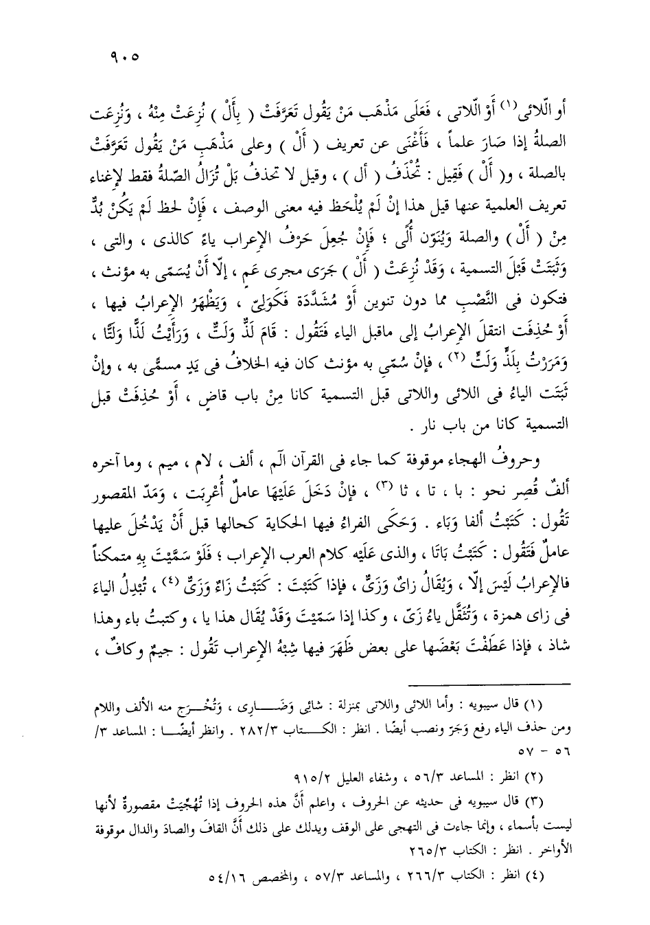 وحروف الهجاء موقوفة كما جاء في القرآن الم، ألف، لام، ميم، وما آخره ألف قصر نحو: با، تا، ثا، فإن دخل عليها عامل أعربت، ومد المقصور تقول: كتبت ألفا وباء. وحكى الفراء فيها الحكاية كحالها قبل أن يدخل عليها عامل فتقول: كتبت باتا، والذي عليه كلام العرب الإعراب؛ فلو سميت به متمكنًا فالإعراب ليس إلا، ويقال زاي وزى، فإذا كتبت: كتبت زاء وزى، تبدل الياء في زاي همزة، وتثقل ياء زي، وكذا إذا سميت وقد يقال هذا يا، وكتبت باء وهذا شاذ، فإذا عطفت بعضها على بعض ظهر فيها شبه الإعراب تقول: جيم وكاف،