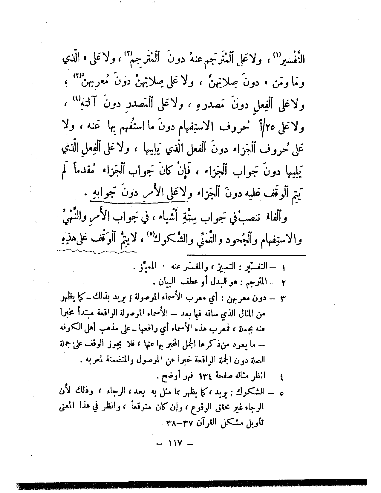 التفسير، ولا على المترجم عنه دون المترجم، ولا على «الذي وما ومن» دون صلاتهن، ولا على صلاتهن دون معربهن، ولا على الفعل دون مصدره، ولا على المصدر دون آلته، ولا على حروف الاستفهام دون ما استفهم بها عنه، ولا على حروف الجزاء دون الفعل الذي يليها، ولا على الفعل الذي يليها دون جواب الجزاء، فإن كان جواب الجزاء مقدمًا لم يتم الوقف عليه دون الجزاء ولا على الأمر دون جوابه.