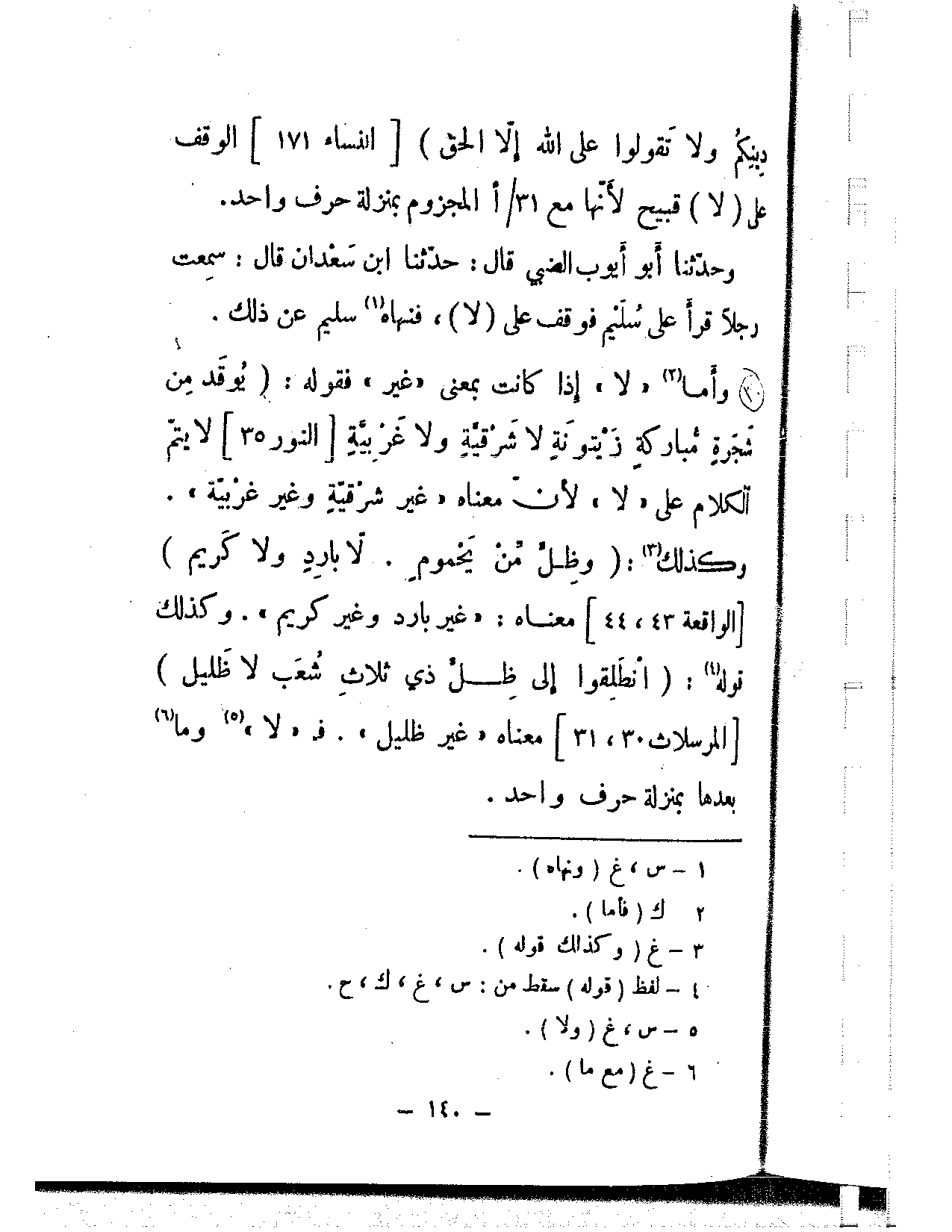 وحدثنا أبو أيوب الضبي قال: حدثنا ابن سعدان قال: سمعت رجلاً قرأ على سليم فوقف على (لا)، فنهاه سليم عن ذلك.