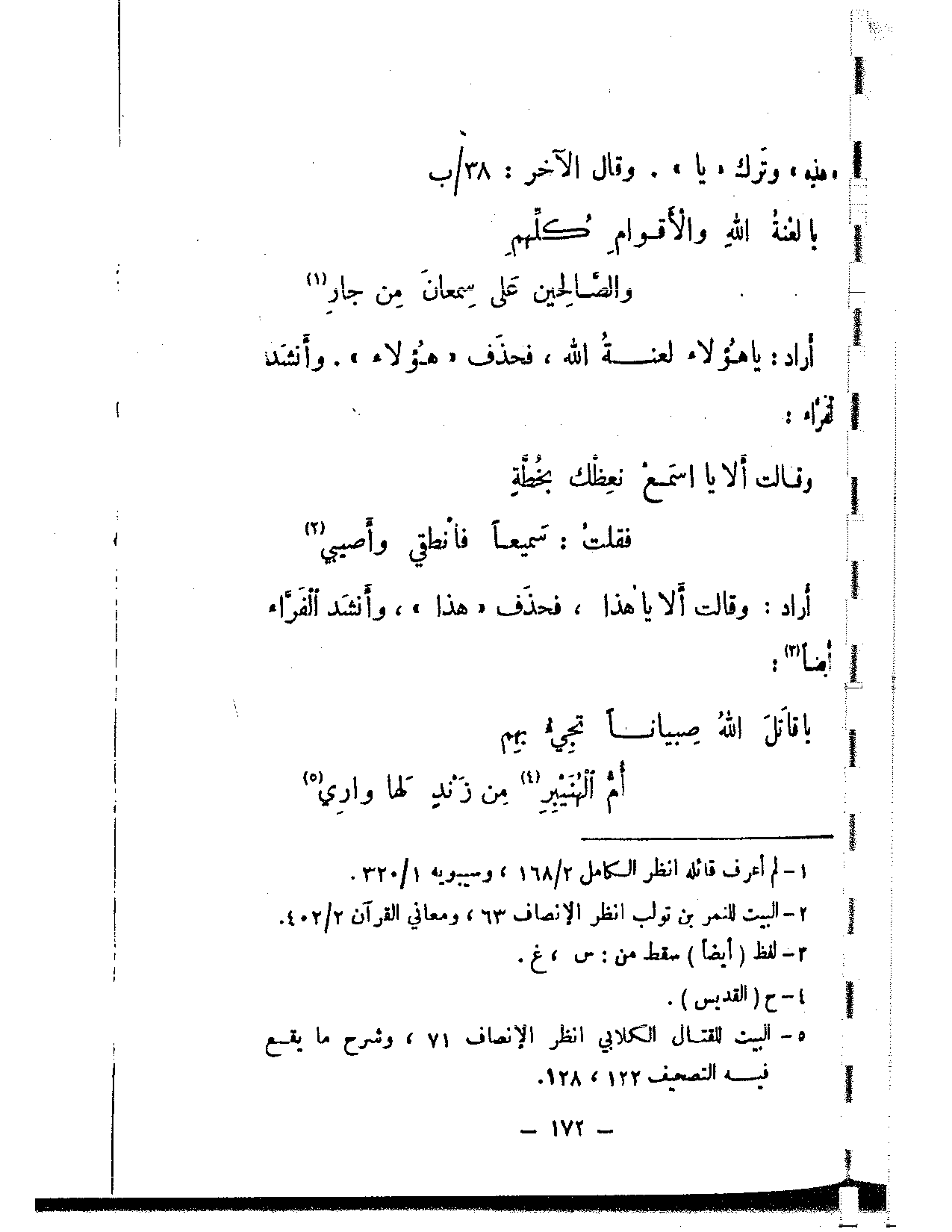 أراد: يا هؤلاء لعنة الله، فحذف «هؤلاء». وأنشد الفراء: