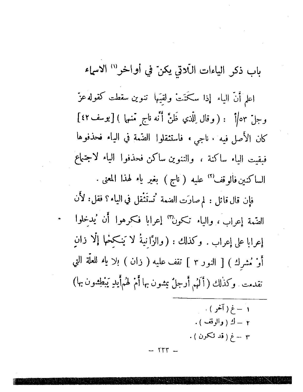 باب ذكر الياءات اللاتي يكن في أواخر الأسماء