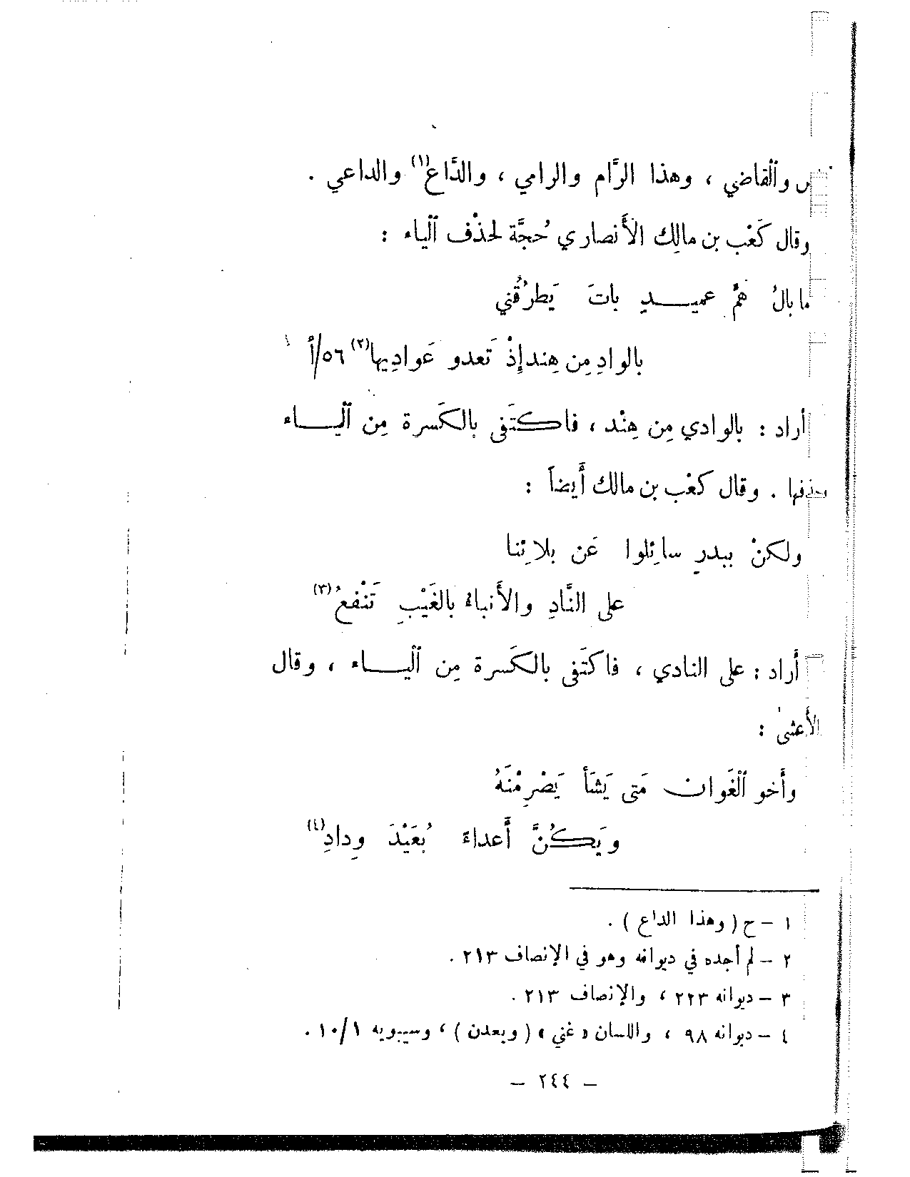 وقال كعب بن مالك الأنصاري حجة لحذف الياء: