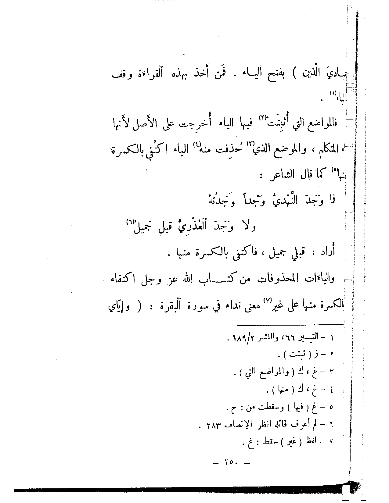 والياءات المحذوفات من كتاب الله عز وجل اكتفاء بالكسرة منها على غير معنى نداء في سورة البقرة: {وإياي