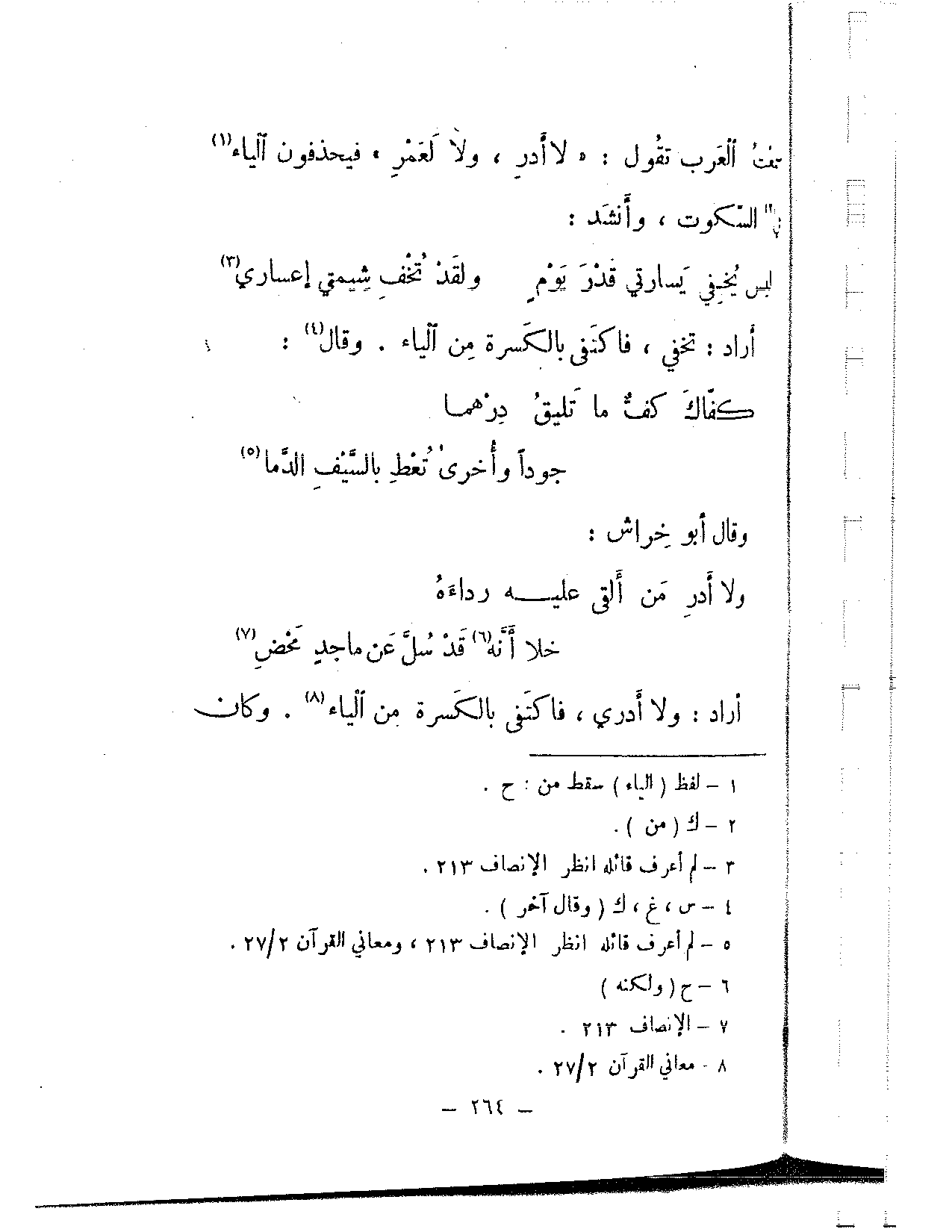 سمعت العرب تقول: «لا أدر، ولا لعمر» فيحذفون الياء في السكوت، وأنشد:
