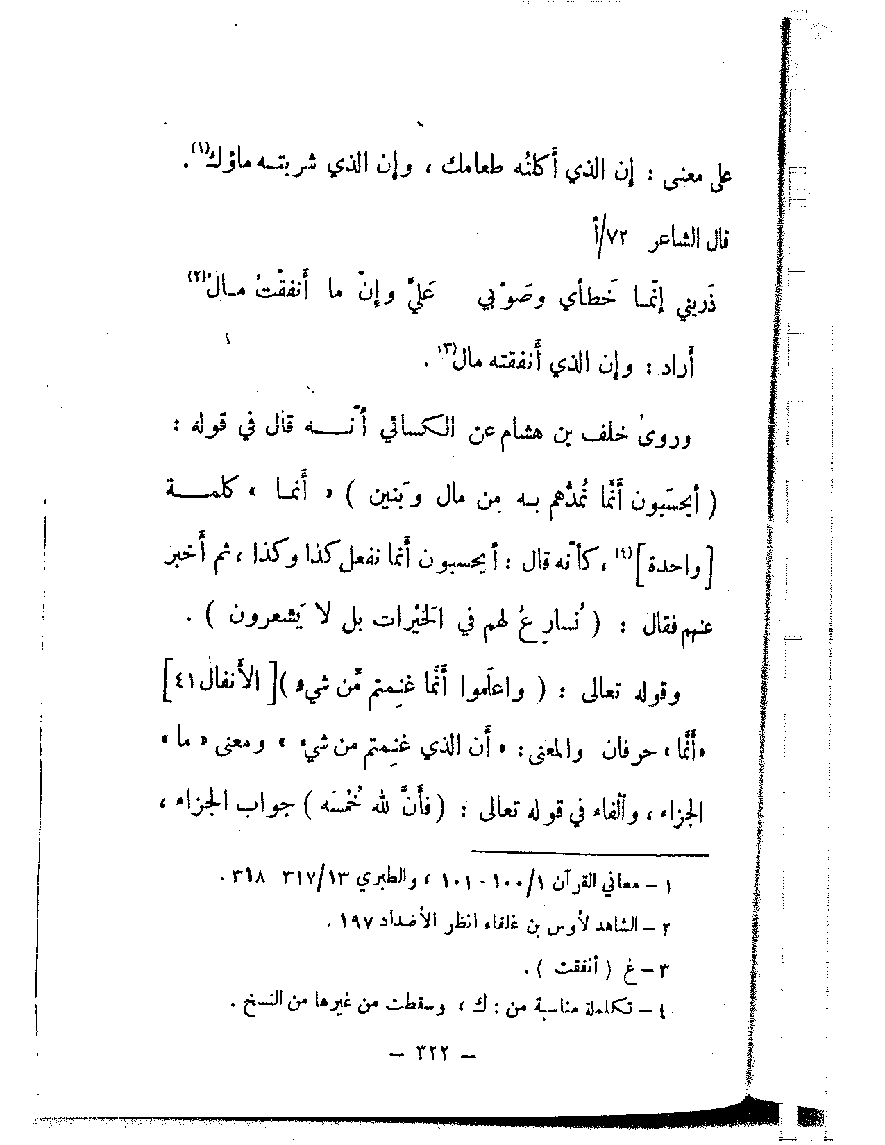 وروى خلف بن هشام عن الكسائي أنه قال في قوله: {أيحسبون أنما نمدهم به من مال وبنين} «أنما» كلمة واحدة، كأنه قال: أيحسبون أنما نفعل كذا وكذا، ثم أخبر عنهم فقال: {نسارع لهم في الخيرات بل لا يشعرون}.