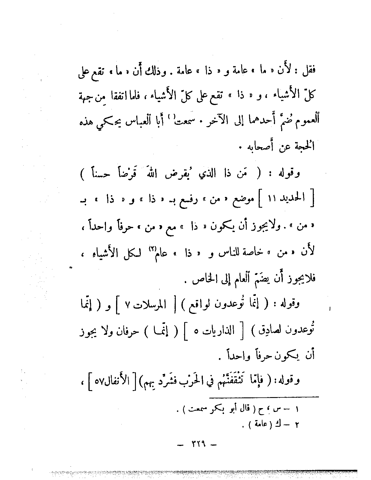 وقوله: {إنما توعدون لواقع} [المرسلات: 7] و {إنما توعدون لصادق} [الذاريات: 5] (إنما) حرفان ولا يجوز أن يكون حرفًا واحدًا.