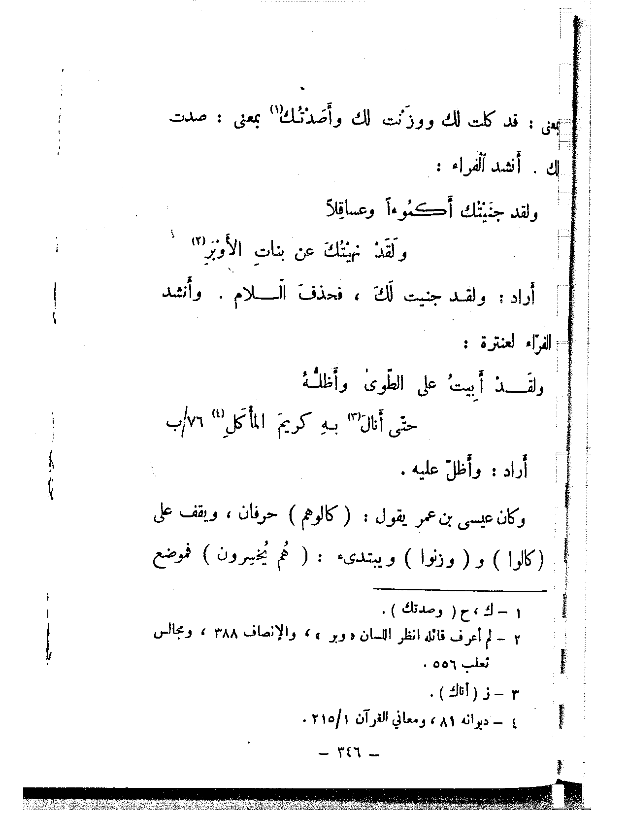 بمعنى: قد كلت لك ووزنت لك وأصدتك بمعنى: صدت لك. أنشد الفراء: