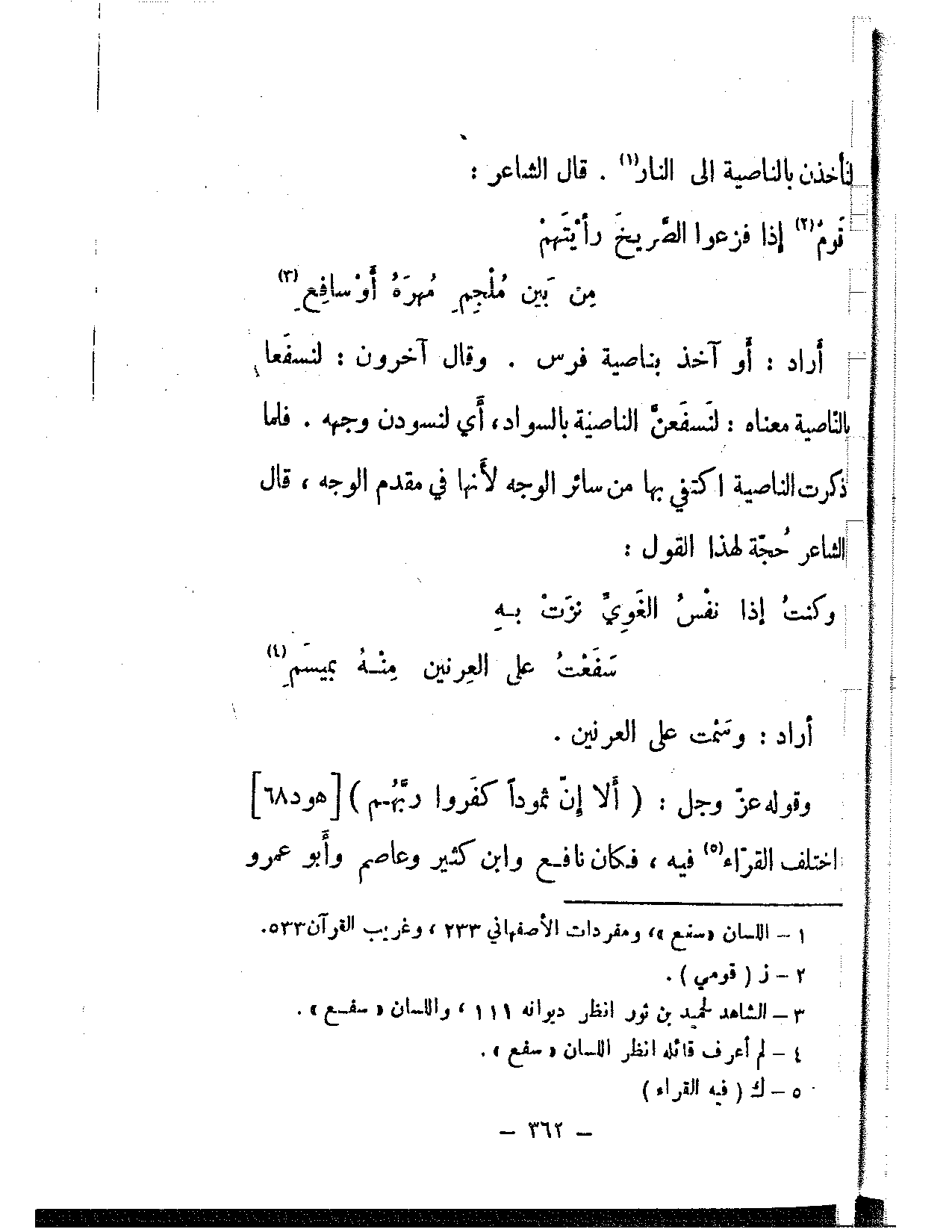 لنأخذن بالناصية إلى النار. قال الشاعر: