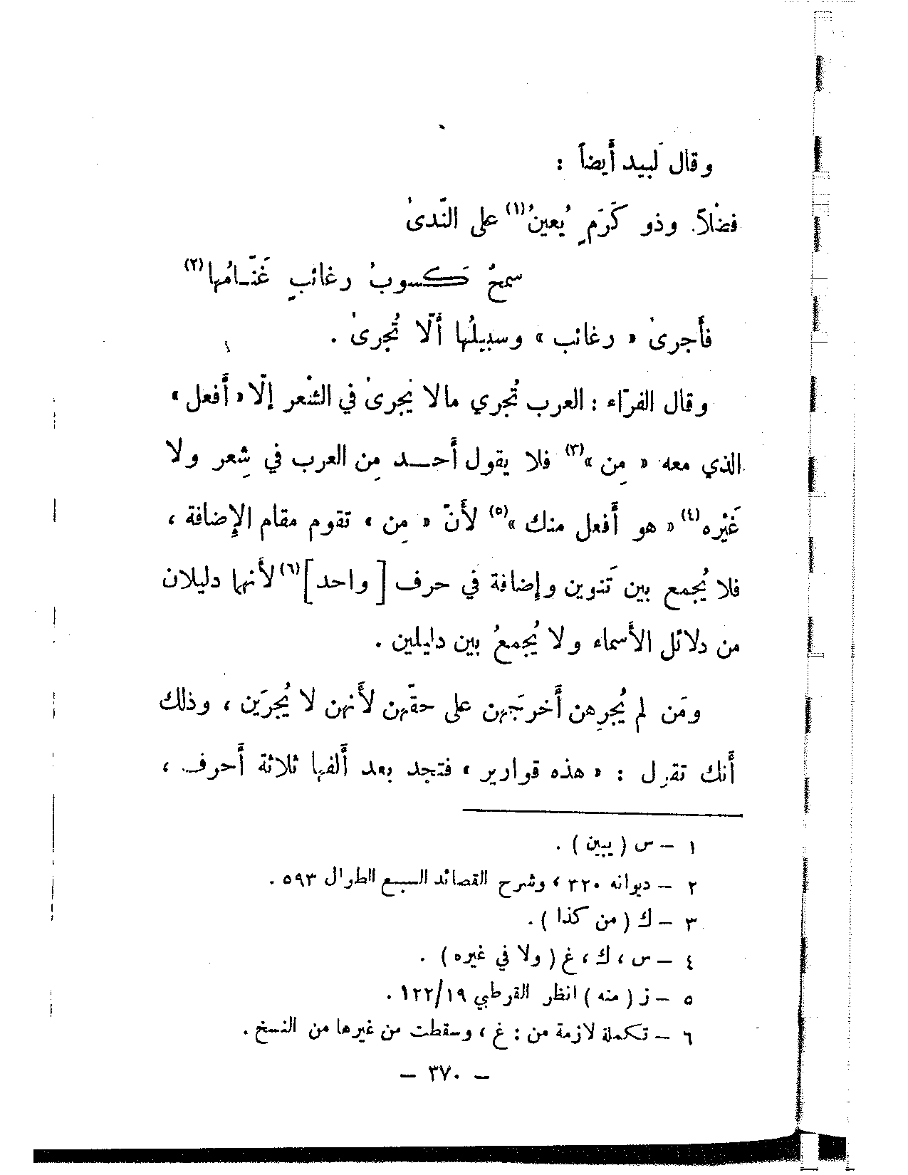 ومن لم يجرهن أخرجهن على حقهن لأنهن لا يجرين، وذلك أنك تقول: «هذه قوارير» فتجد بعد ألفها ثلاثة أحرف،