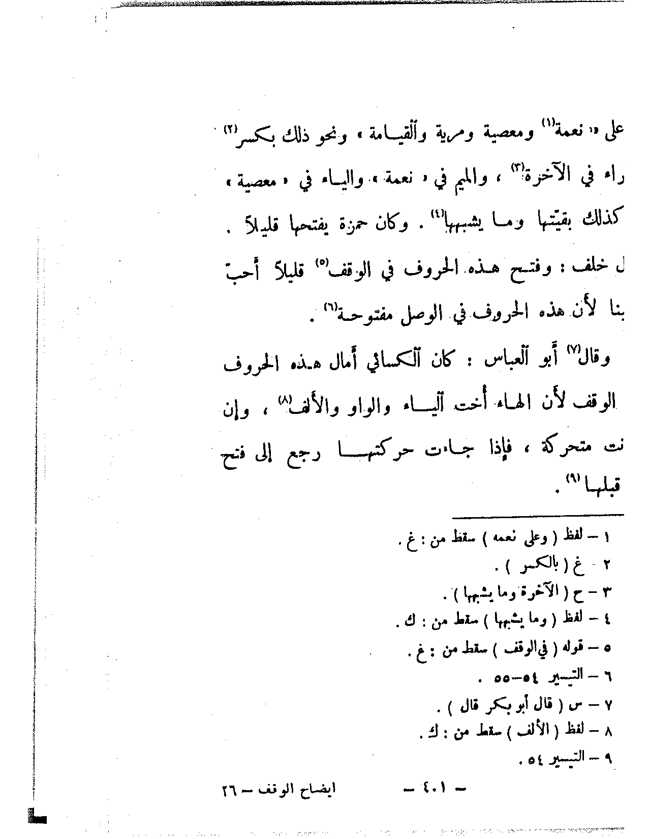 قال خلف: وفتح هذه الحروف في الوقف قليلاً أحب إلينا لأن هذه الحروف في الوصل مفتوحة.