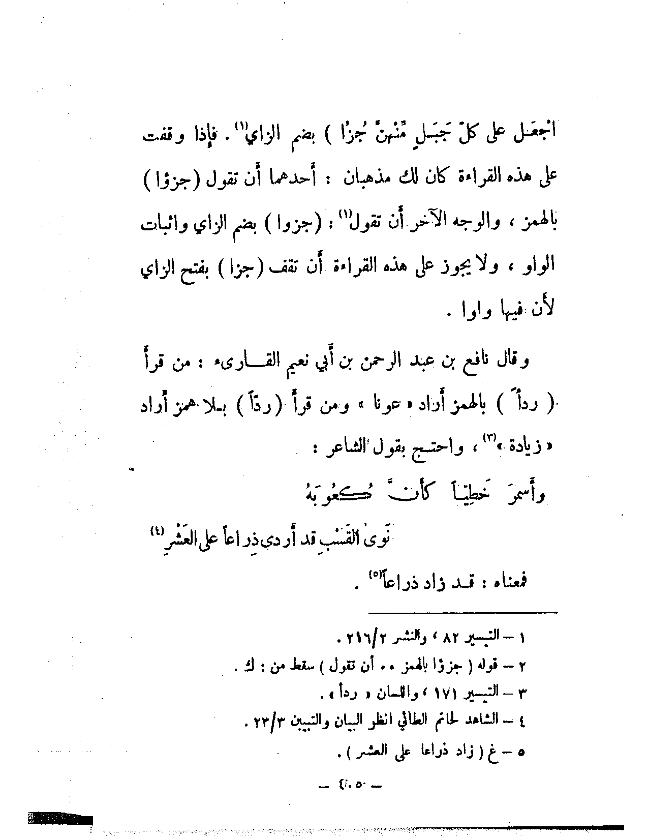 وقال نافع بن عبد الرحمن بن أبي نعيم القارئ: من قرأ (ردأ) بالهمز أراد «عونا» ومن قرأ (ردًا) بلا همز أراد «زيادة»، واحتج بقول الشاعر: