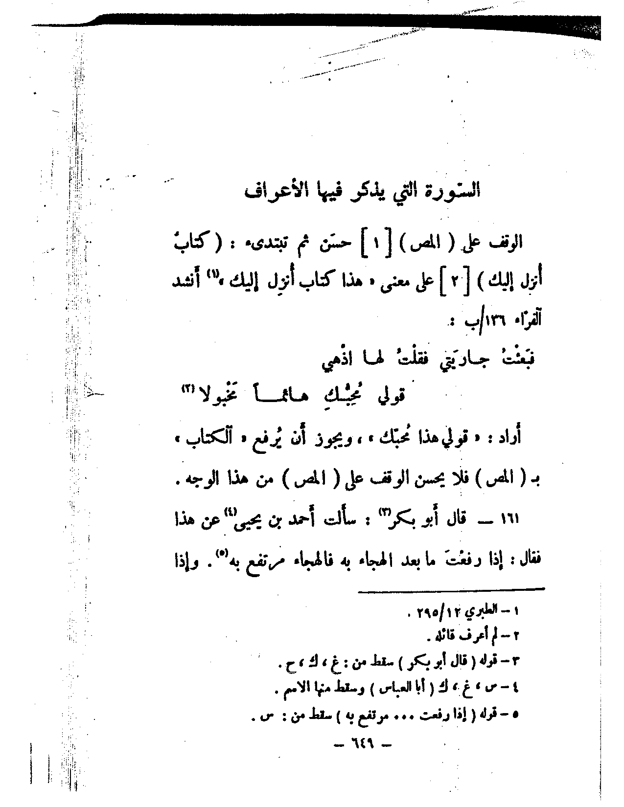 الوقف على (المص) [1] حسن ثم تبتدئ: (كتاب أنزل إليك) [2] على معنى «هذا كتاب أنزل إليك» أنشد القراء:
