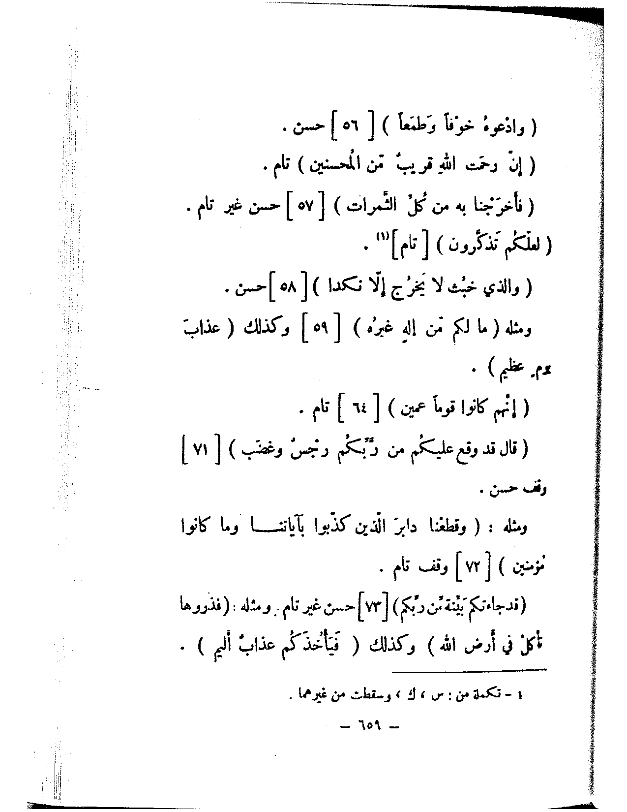 (قد جاءتكم بينة من ربكم) [73] حسن غير تام. ومثله: (فذروها تأكل في أرض الله) وكذلك (فيأخذكم عذاب أليم).