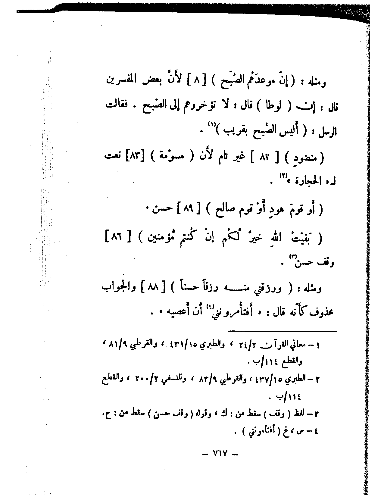 ومثله: (إن موعدهم الصبح) [8] لأن بعض المفسرين قال: إن (لوطا) قال: لا تؤخروهم إلى الصبح. فقالت الرسل: (أليس الصبح بقريب).