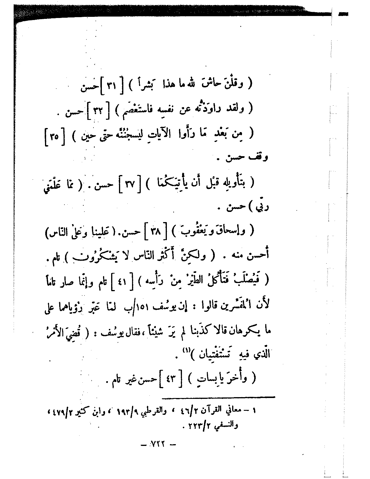 (وإسحاق ويعقوب) [38] حسن. (علينا وعلى الناس) أحسن منه. (ولكن أكثر الناس لا يشكرون) تام.