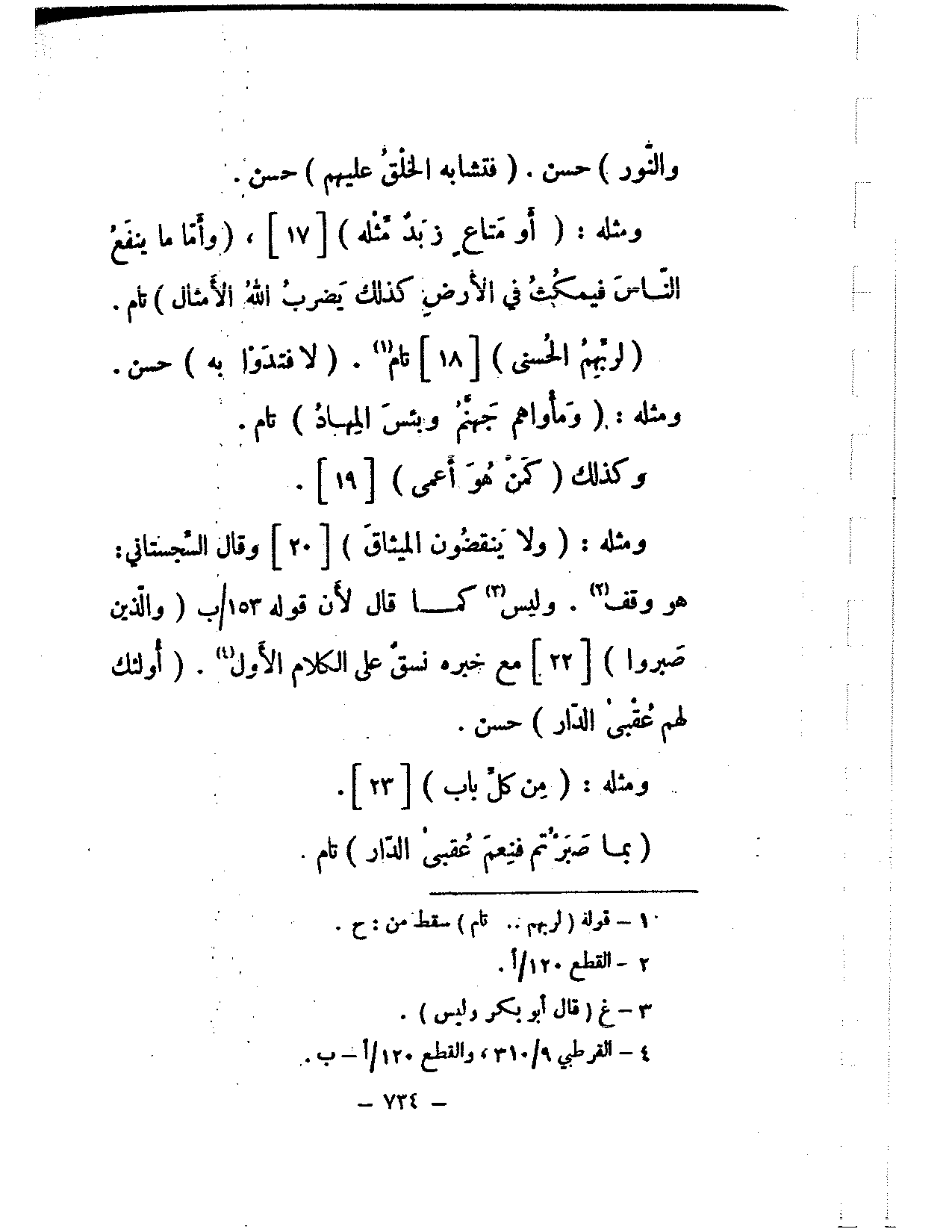 ومثله: (ولا ينقضون الميثاق) [20] وقال السجستاني: هو وقف. وليس كما قال لأن قوله (والذين صبروا) [22] مع خبره نسق على الكلام الأول. (أولئك لهم عقبى الدار) حسن.