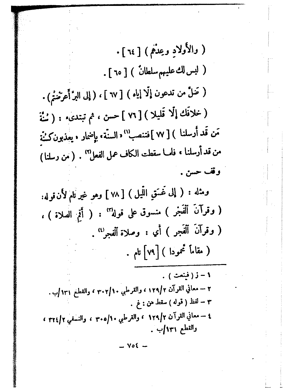 ومثله: {إلى غسق الليل} [78] وهو غير تام لأن قوله: (وقرآن الفجر) منسوق على قوله: (أقم الصلاة)، (وقرآن الفجر) أي: وصلاة الفجر.