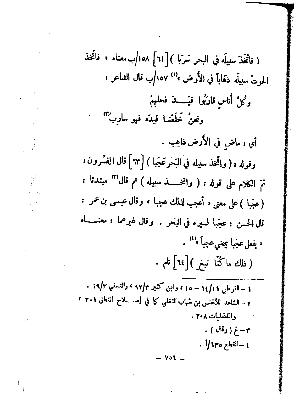 (فاتخذ سبيله في البحر سربا) [61] معناه «فاتخذ الحوت سبيله ذهابا في الأرض» قال الشاعر: