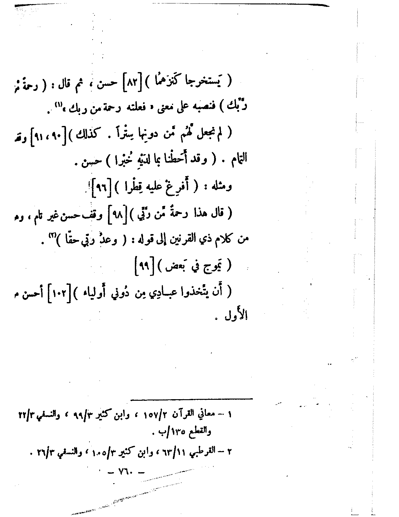 (قال هذا رحمة من ربي) [98] وقف حسن غير تام، وهو من كلام ذي القرنين إلى قوله: (وعد ربي حقا).
