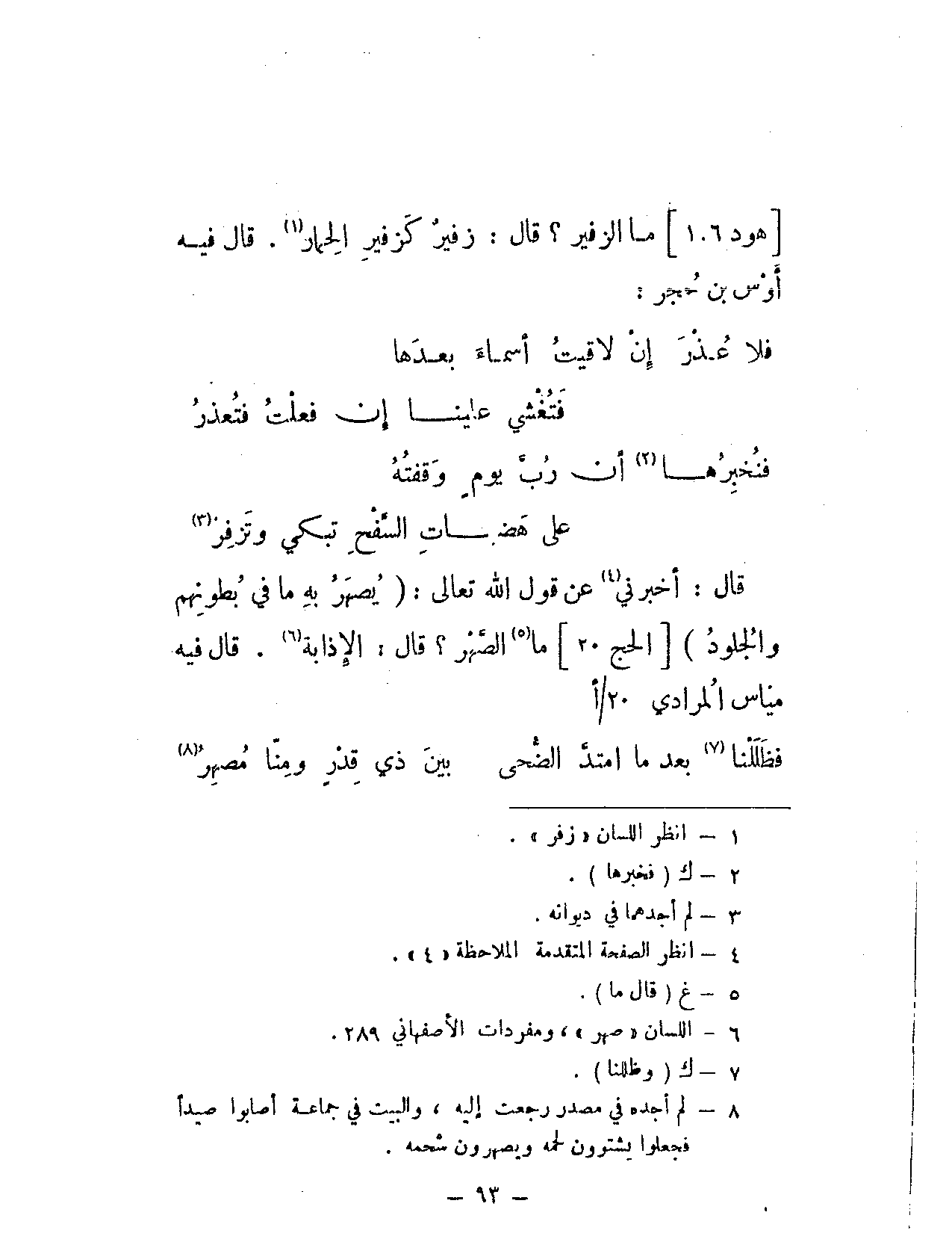 [هود: 106] ما الزفير؟ قال: زفير كزفير الحمار. قال فيه أوس بن حجر: