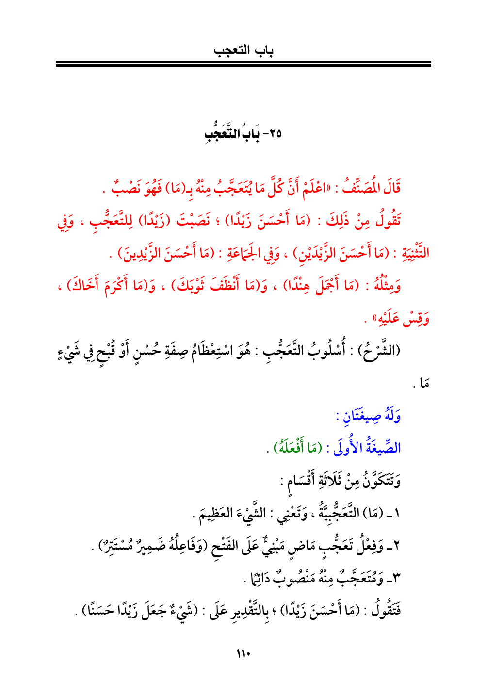 قَالَ المُصَنِّفُ: «اعْلَمْ أَنَّ كُلَّ مَا يُتَعَجَّبُ مِنْهُ بِـ (مَا) فَهُوَ نَصْبٌ.