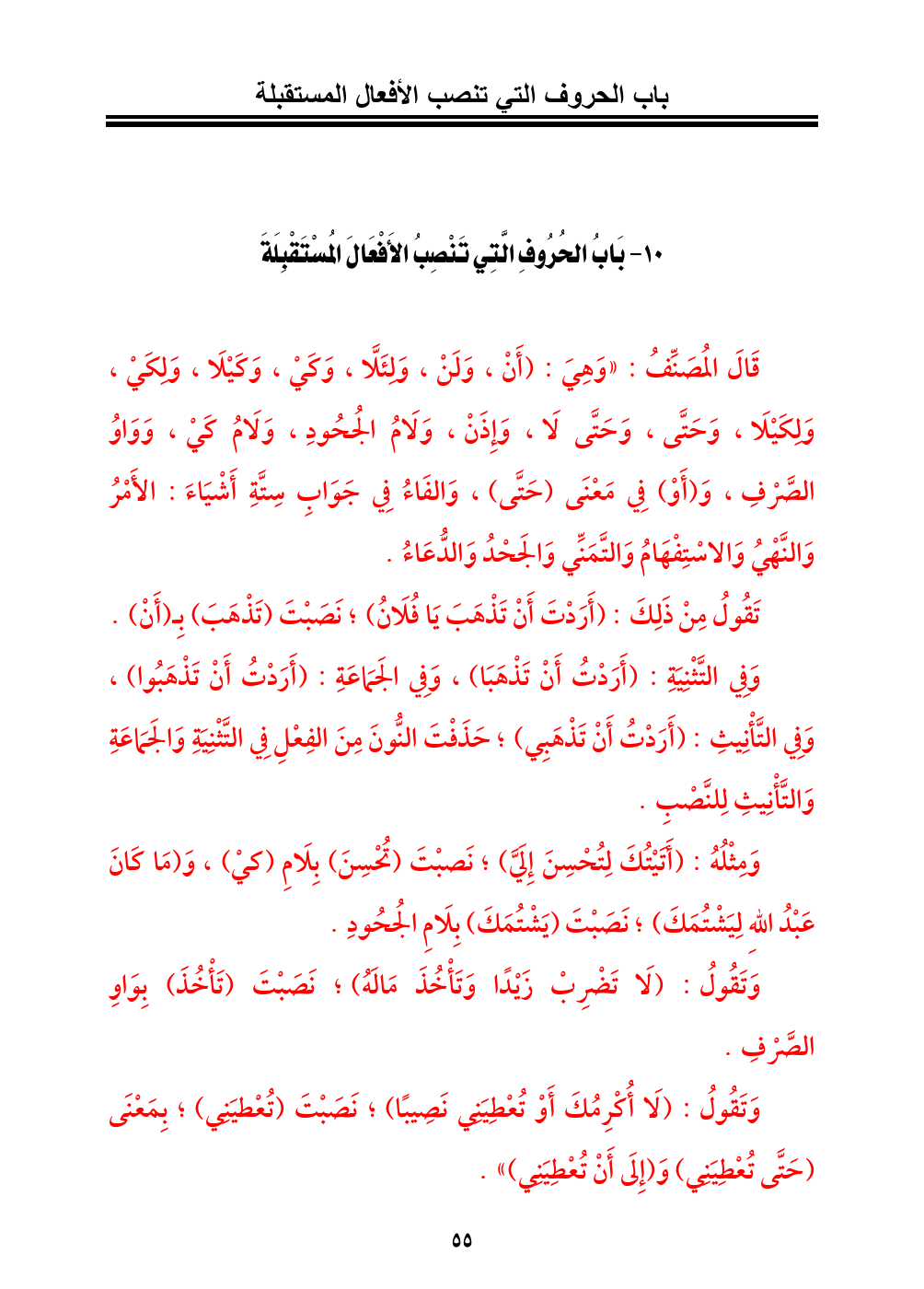 10 - بَابُ الحُرُوفِ الَّتِي تَنْصِبُ الأَفْعَالَ المُسْتَقْبِلَةَ