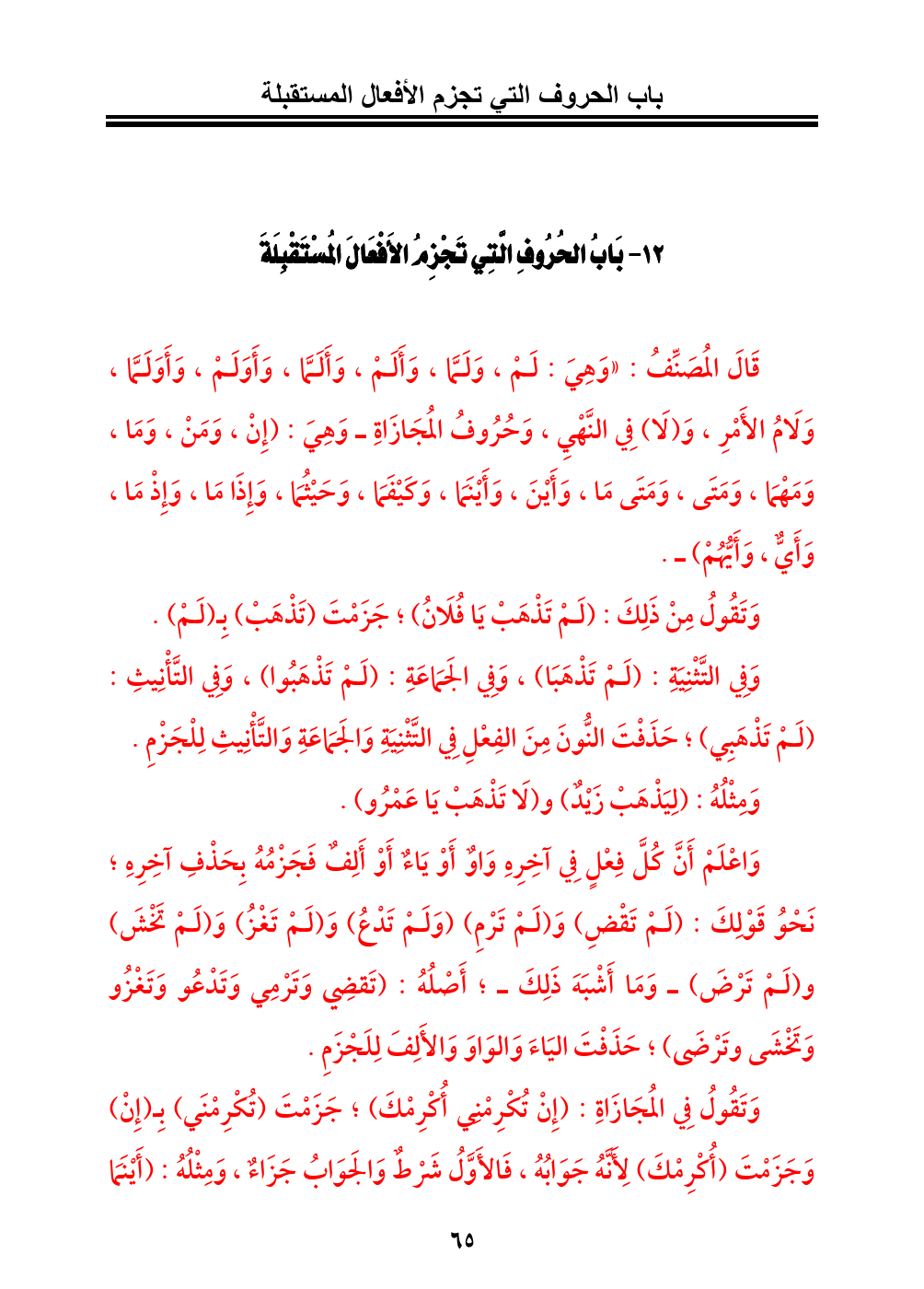 12 - بَابُ الحُرُوفِ الَّتِي تَجْزِمُ الأَفْعَالَ المُسْتَقْبِلَةَ