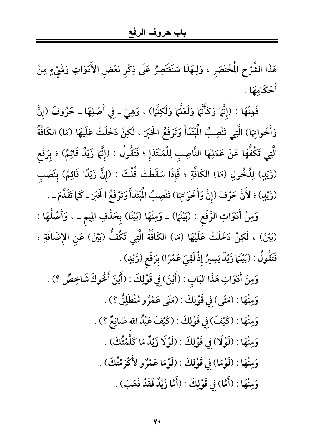 هَذَا الشَّرْحِ المُخْتَصَرِ، وَلِهَذَا سَنَقْتَصِرُ عَلَى ذِكْرِ بَعْضِ الأَدَوَاتِ وَشَيْءٍ مِنْ أَحْكَامِهَا: